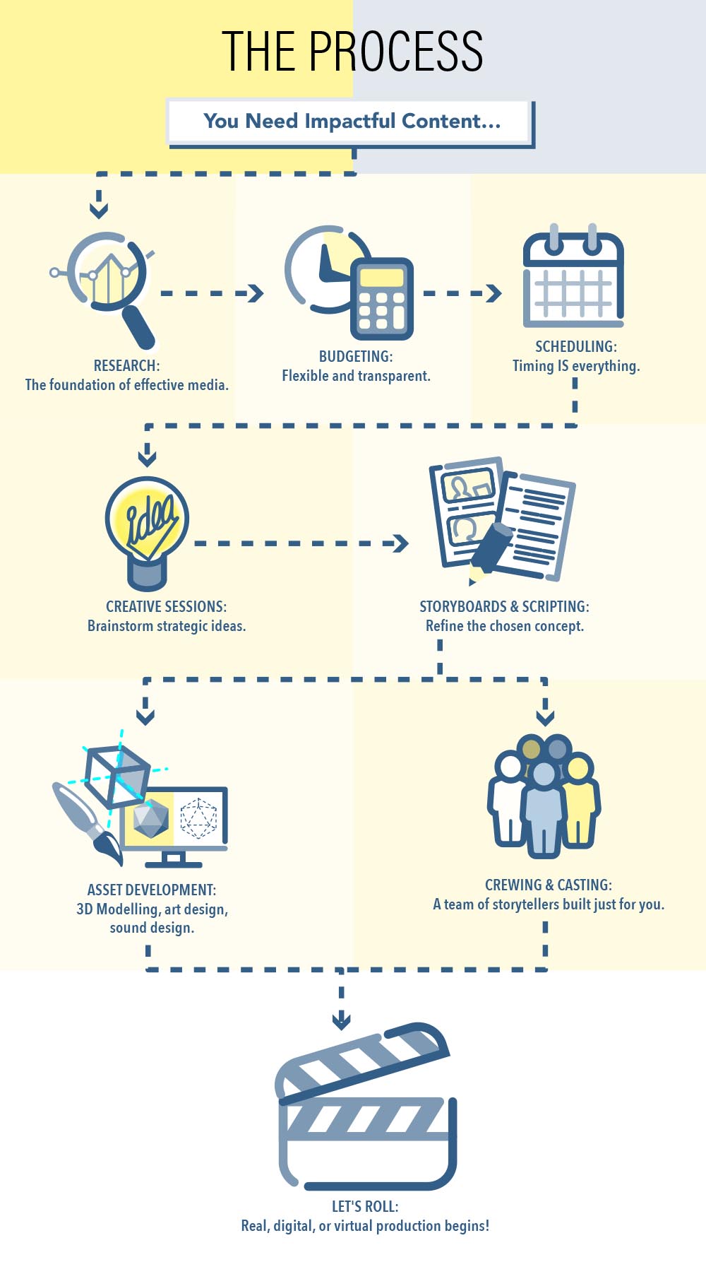 We are an idea house. From creative conceptualization to research and writing, to scripting and storyboards, our team of creative specialists do it all!